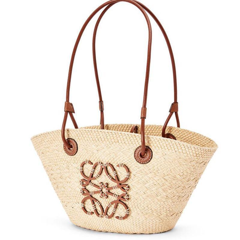 • A traditional basket bag with a classic hand-woven body, tubular calfskin strap and embroidered calfskin anagram. This small version is made with Illaca palm grown, harvested and sun-dried in Colombia and woven by women artisans from Corporación Oficio y Arte, an organization based on fair trade principles.