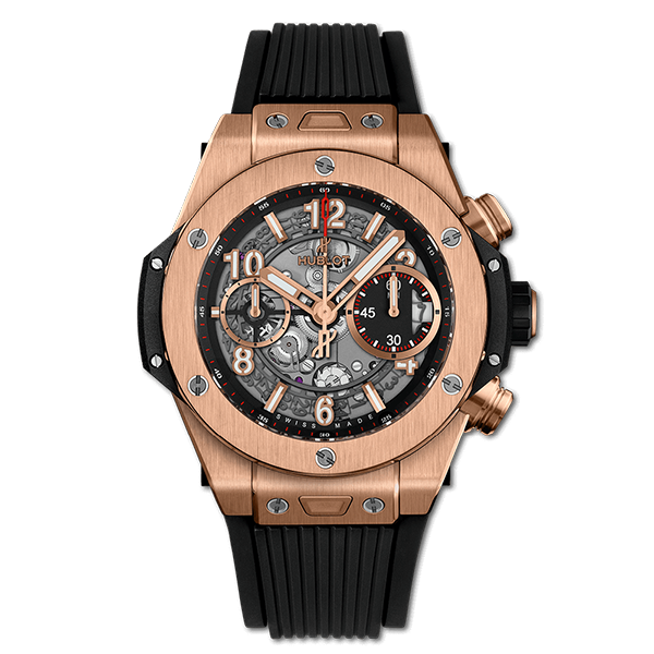 Bezel: Satin-coated and polished 18-carat king gold with 6 H-shaped titanium screws