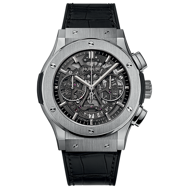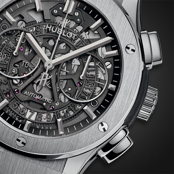 Bezel: Vertical satin-coated titanium with 6 H-shaped titanium screws