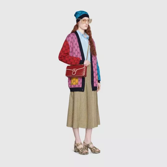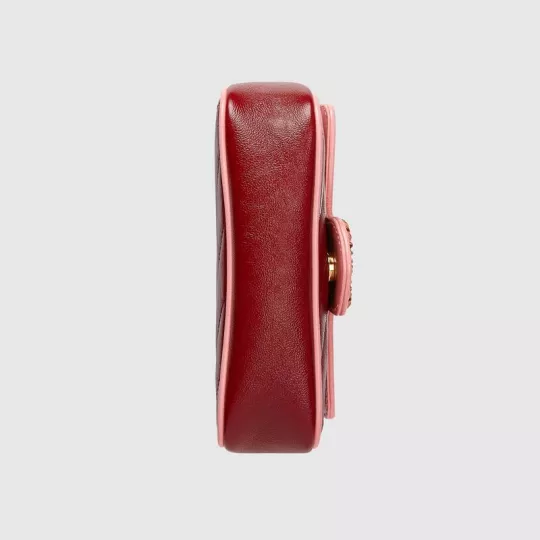 This GG Marmont series super mini handbag is made of red and pink quilted leather, showing the beauty of stunning contrast. The darling of the brand Gucci has opted for a series of brightly toned designs inspired by precious gemstones, minus a variety of outstanding styles from the Infinite Overture series. The iconic double-G accessory with enamel details adds to the overall appeal of the design.