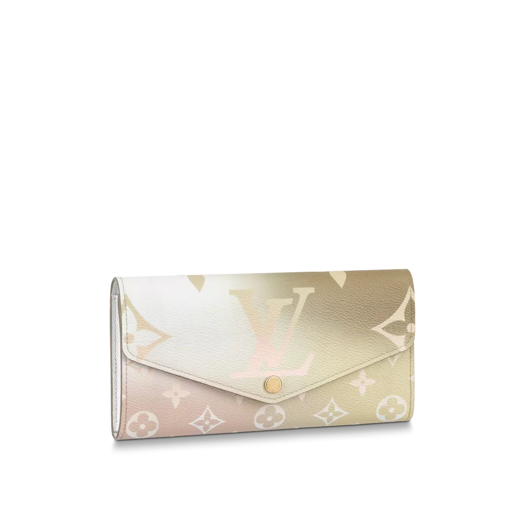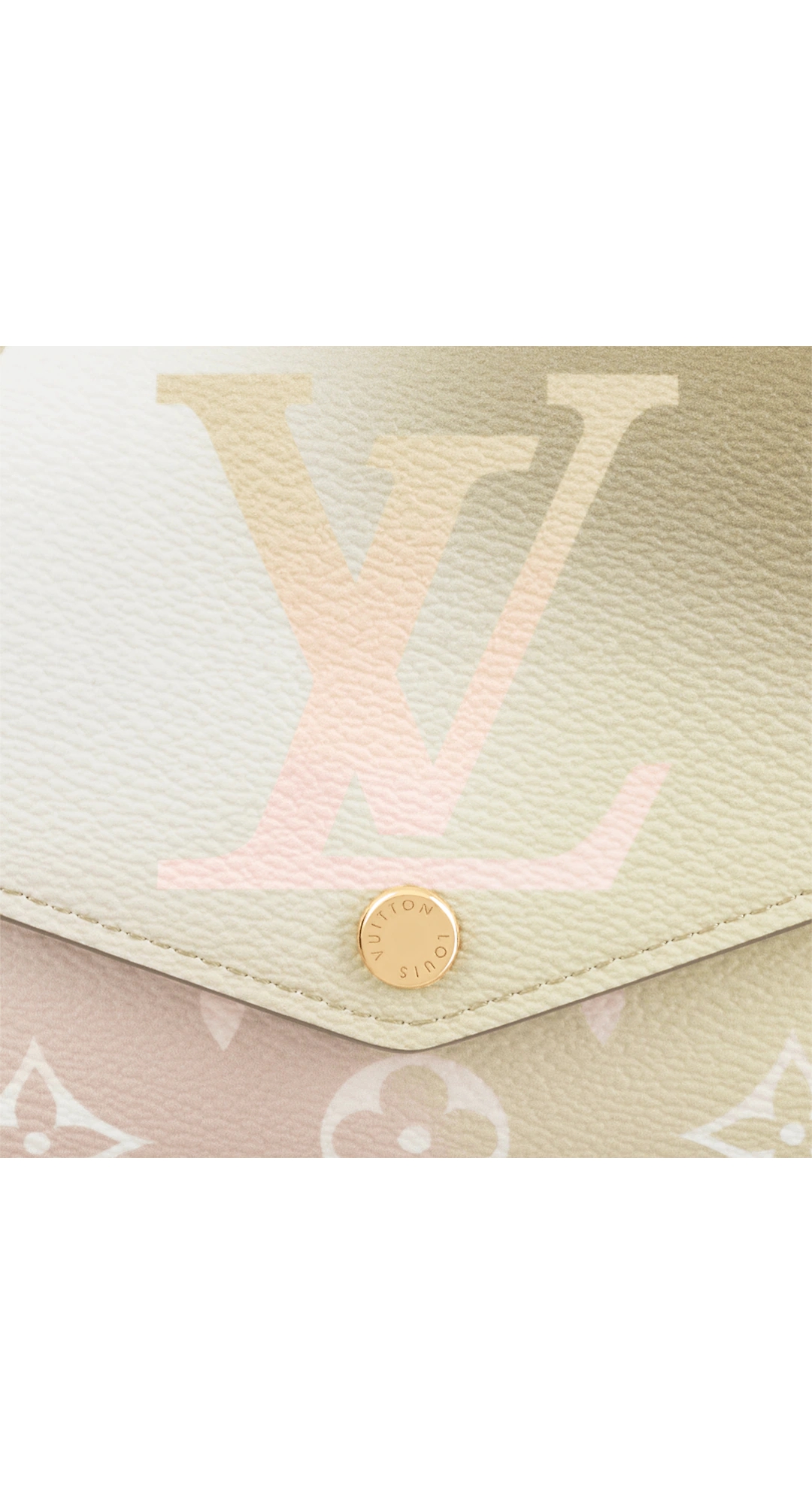 One of the “Spring in the City” capsule collections, “Portefeuille Sala”. It is made of a monogrammed canvas printed with gradients inspired by the twilight sky. The classic wallet with an emvelop flap is adorned with engraved gold-colored snaps. With zippered coin pockets and multiple card slots, the interior is easy to organize.